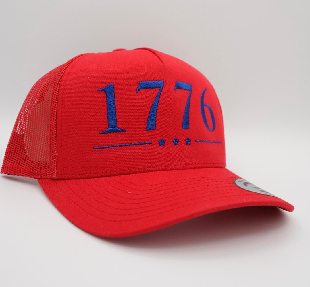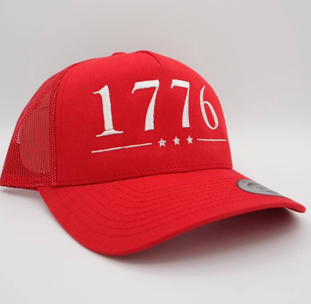 Celebrate bold beginnings with this Red 1776 Trucker Hat, embroidered in your choice of blue or white thread. Whether you’re repping your love of freedom, faith, or both this hat keeps it simple, strong, and unapologetically American.