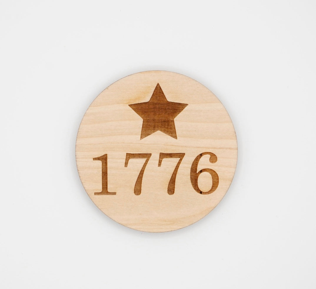 This 2” round birch magnet features a clean, engraved “1776” design—perfect for those who value freedom, history, and a timeless aesthetic. A subtle yet strong way to showcase your patriotic spirit.