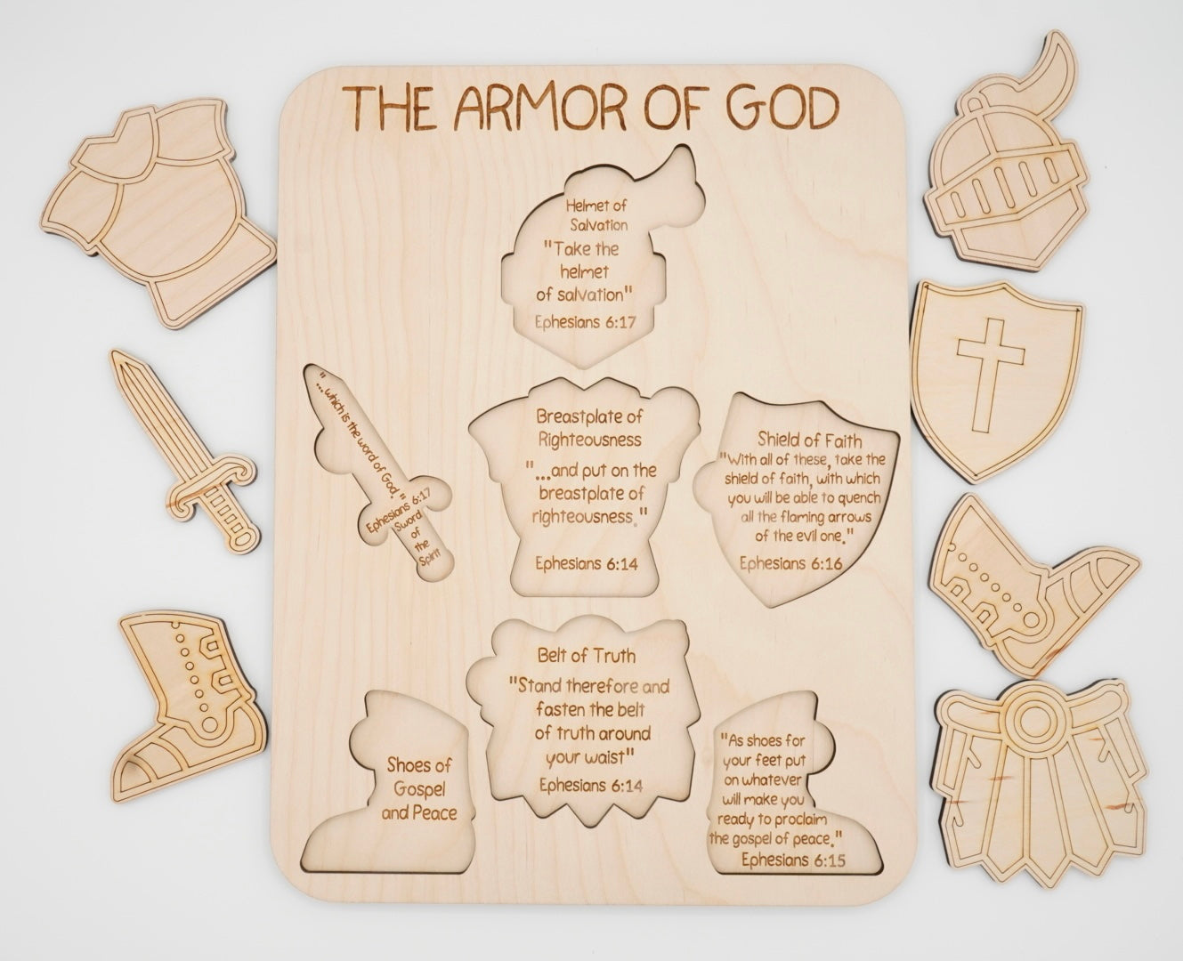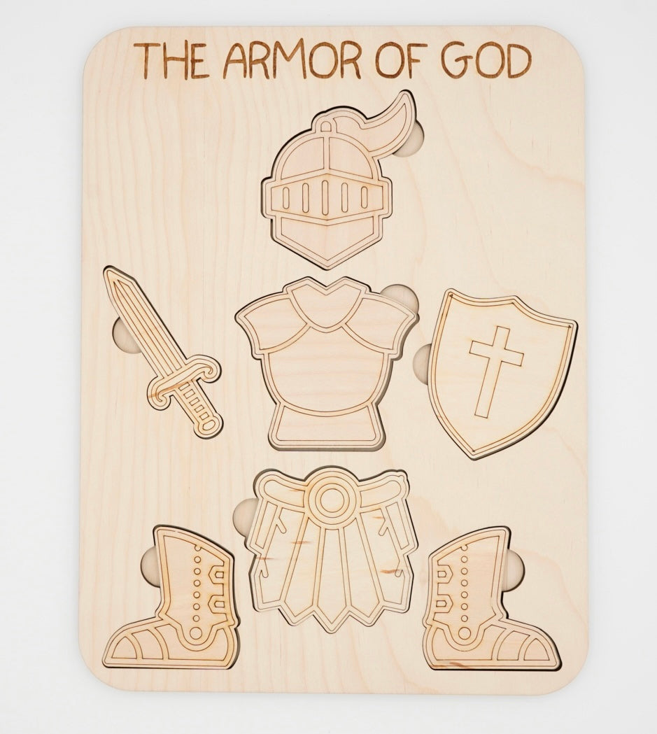 Teach your child about the full Armor of God with this interactive Armor of God Puzzle. This birch wood puzzle features 7 individual pieces, each representing a part of the armor described in Ephesians 6. It’s a hands-on way to help kids understand how to stand strong in their faith every day.