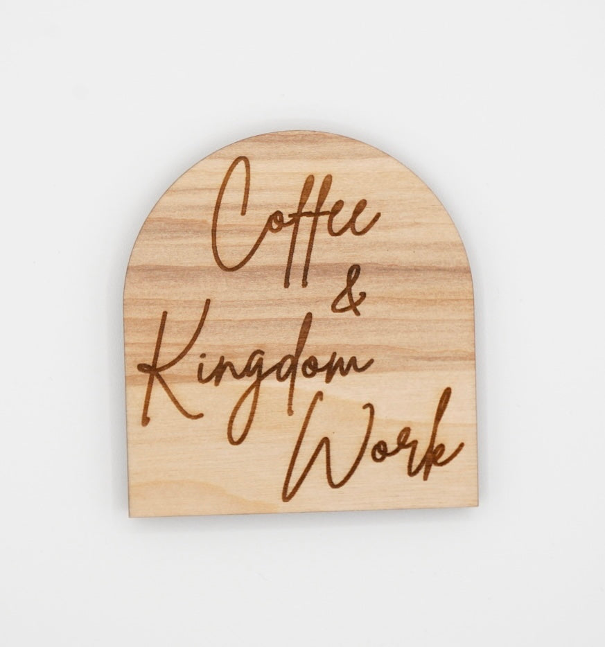 This “Coffee & Kingdom Work” magnet is a daily dose of motivation for faith-filled go-getters. Engraved on birch wood, it’s the perfect reminder that mornings are made for more than just caffeine—they’re for calling.