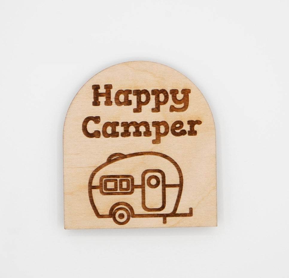 This “Happy Camper” magnet brings cozy campfire vibes wherever it sticks! Engraved on birch wood and perfectly sized for fridges, RVs, or cabins—it’s a must-have for every adventure lover.