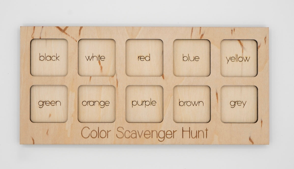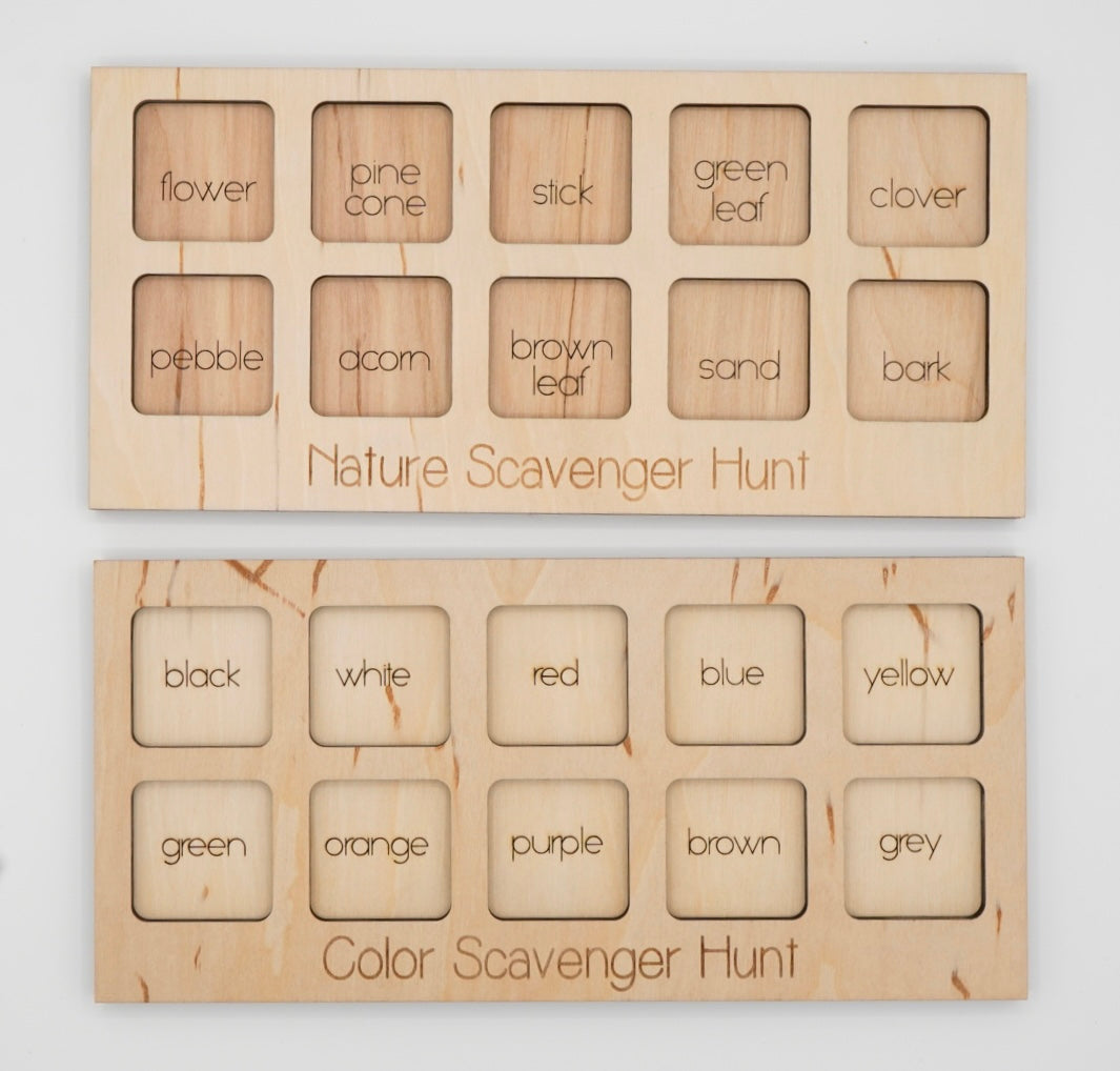 Encourage kids to explore the great outdoors with these beautifully crafted wooden scavenger hunt boards, a fun and screen-free way to connect with nature and spark curiosity! Available in two engaging themes Nature and Color, each board features simple prompts that guide little explorers to find matching items in their environment.